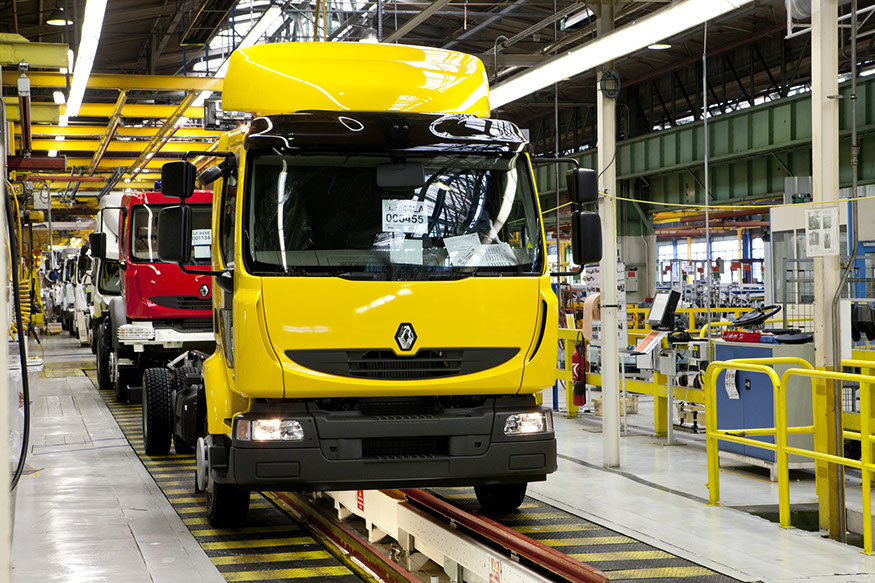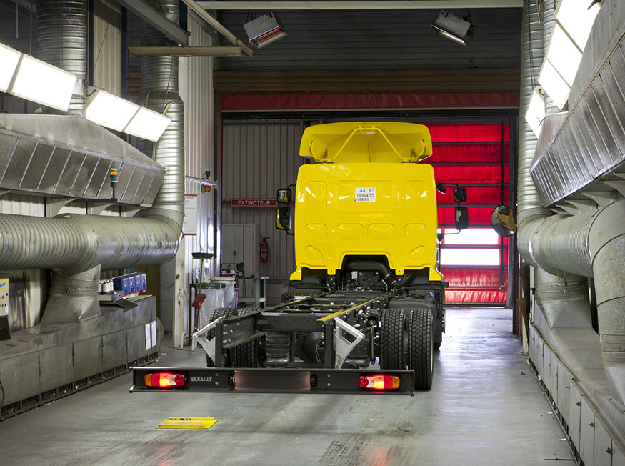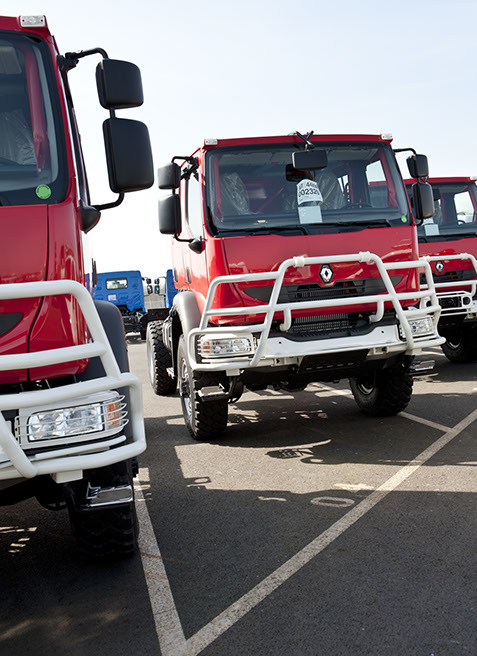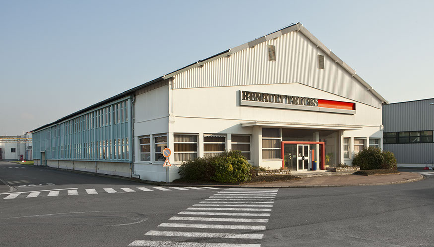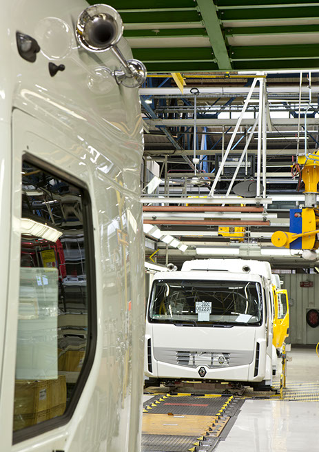Usine de construction automobile, Renault Trucks, Blainville-sur-Orne. Renault Trucks livre notamment des camions de pompiers en version 4x4 équipés de pare-buffle.