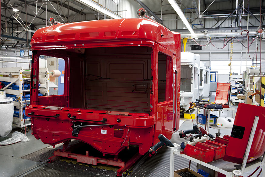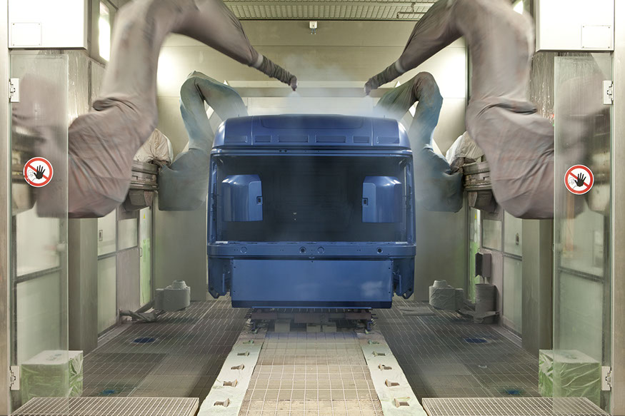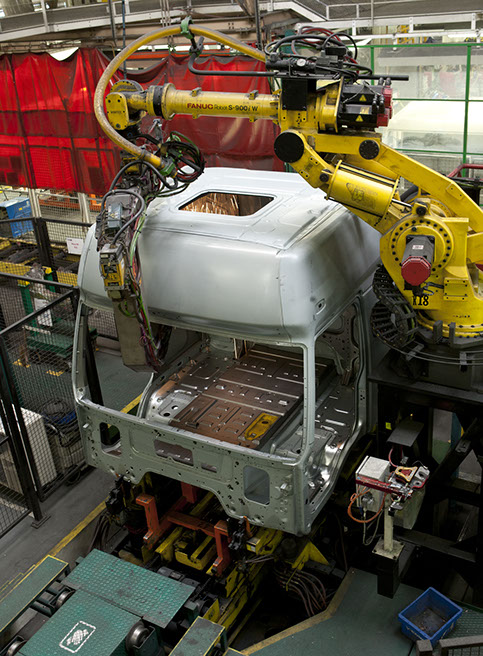 Usine de construction automobile, Renault Trucks, Blainville-sur-Orne. Les finitions portées sur les cabines sont opérées manuellement par des soudeurs. © Région Basse-Normandie – Inventaire général – Manuel de Rugy, 2012