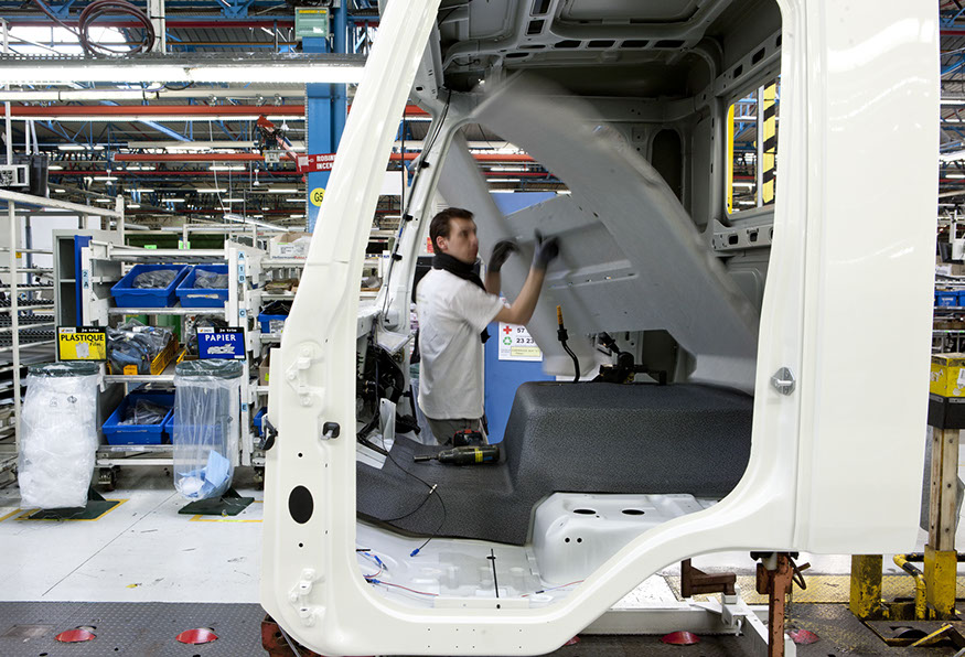Usine de construction automobile, Renault Trucks, Blainville-sur-Orne. Une partie du garnissage des cabines est effectuée manuellement par des opérateurs. © Région Basse-Normandie – Inventaire général – Manuel de Rugy, 2012
