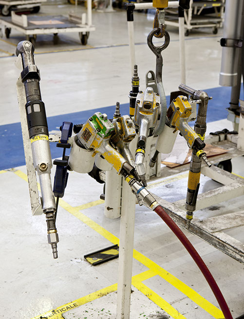 Usine de construction automobile, Renault Trucks, Blainville-sur-Orne. Les outils nécessaires au montage sont disposés au plus près de chaque poste de travail. © Région Basse-Normandie – Inventaire général – Manuel de Rugy, 2012