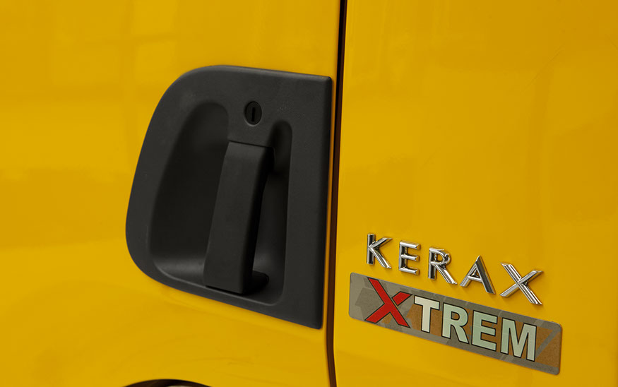 Usine de construction automobile, Renault Trucks, Blainville-sur-Orne. Chaque gamme de camions présente des modèles variés, le Premium siglé « Kerax XTrem » est ainsi destiné au marché de la construction lourde. © Région Basse-Normandie – Inventaire général – Manuel de Rugy, 2012