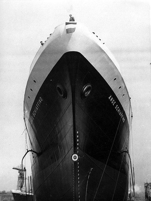 Usine de construction automobile, Renault Trucks, Blainville-sur-Orne. Lancement du navire "Ange Schiaffino" aux Chantiers navals français, le 15 mars 1951. © Région Basse-Normandie – Inventaire général – Copaviem (reproduction)